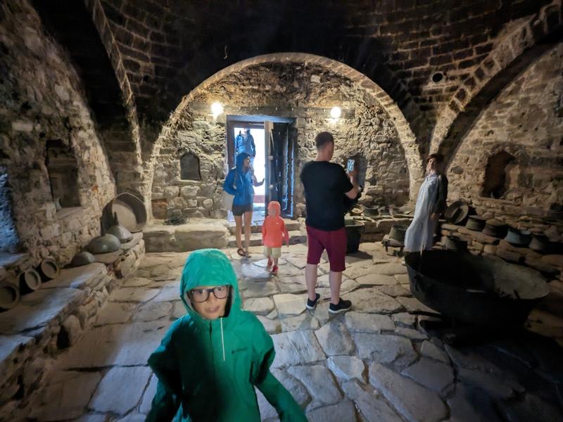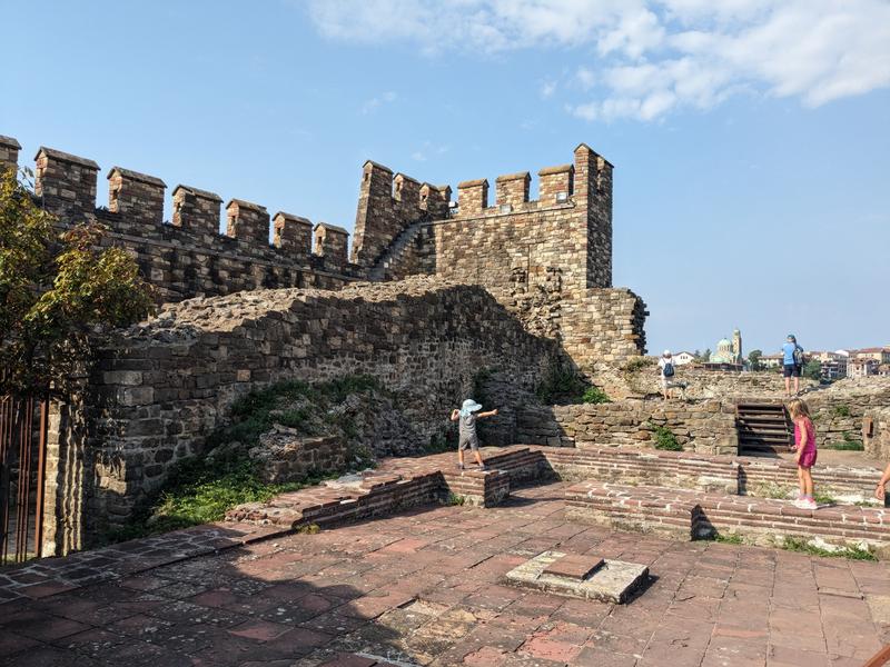 For breakfast we went to the pinko Cafe, a pink-themed cafe filled with different pink creatures and pink dishes. I think it was also a reference to Bulgaria’s communist past, being nestled in the hotel Kiev. We then hiked to the castle. The kids investigated a scorpion and a catapult and we talked about how each one stored energy to launch projectiles. Sam wasn’t feeling well so he and Sara waited while the rest of us climbed up to the strangest church we’d ever been inside at the top. The interior was something… Gothic? Brutalist? Slavic? We couldn’t pick the name for whatever it was, but it seemed like an interior shot from game of thrones. The mural itself was also pretty different for the inside of church. After that we hustled back to the apartment and packed our bags. We drove on towards Byala.