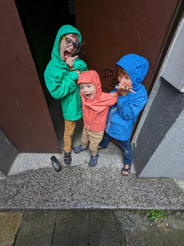 After lunch we went across the street to the park, filled up our water bottles and let the kids play in the concrete slide with some leaves. It’s the little things. After getting a call from the airline baggage people, we headed back on the tram into town. We got one out of three bags, and gelato for the kids.